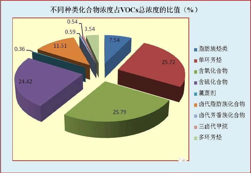 對不同種類VOCs的濃度分析發現,單環芳烴(25.72%)、含氧化...